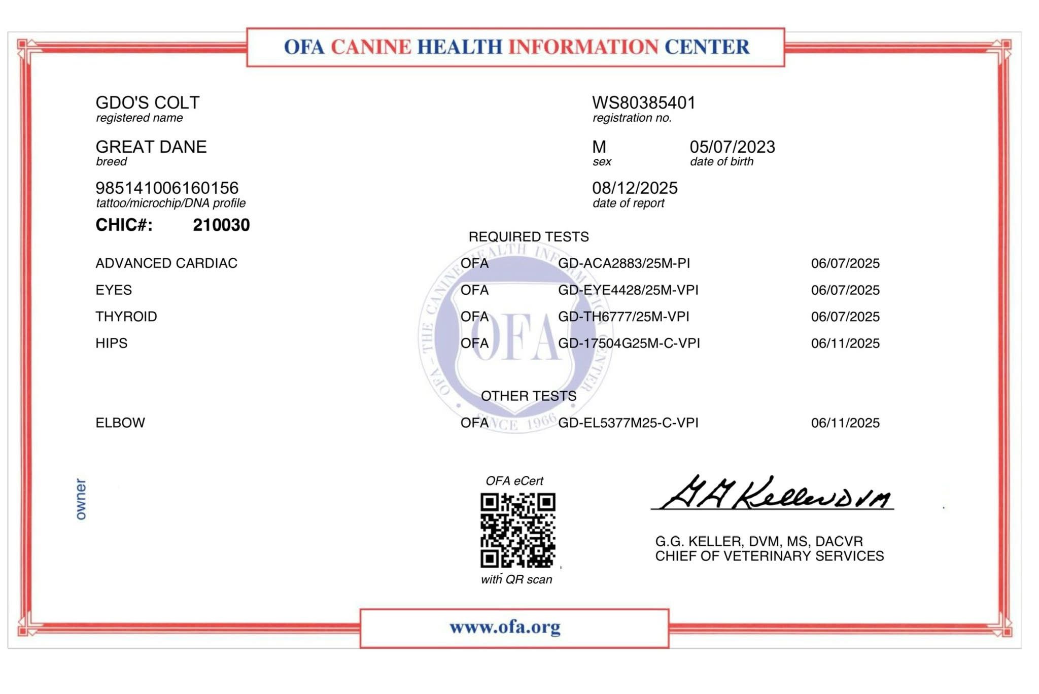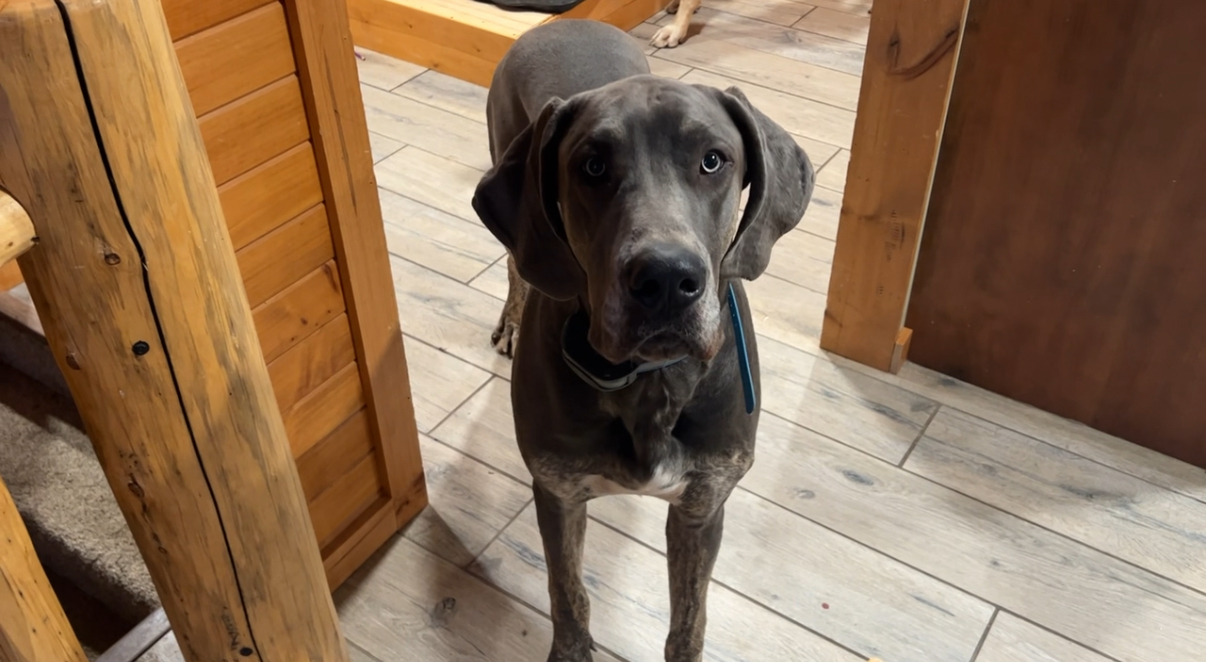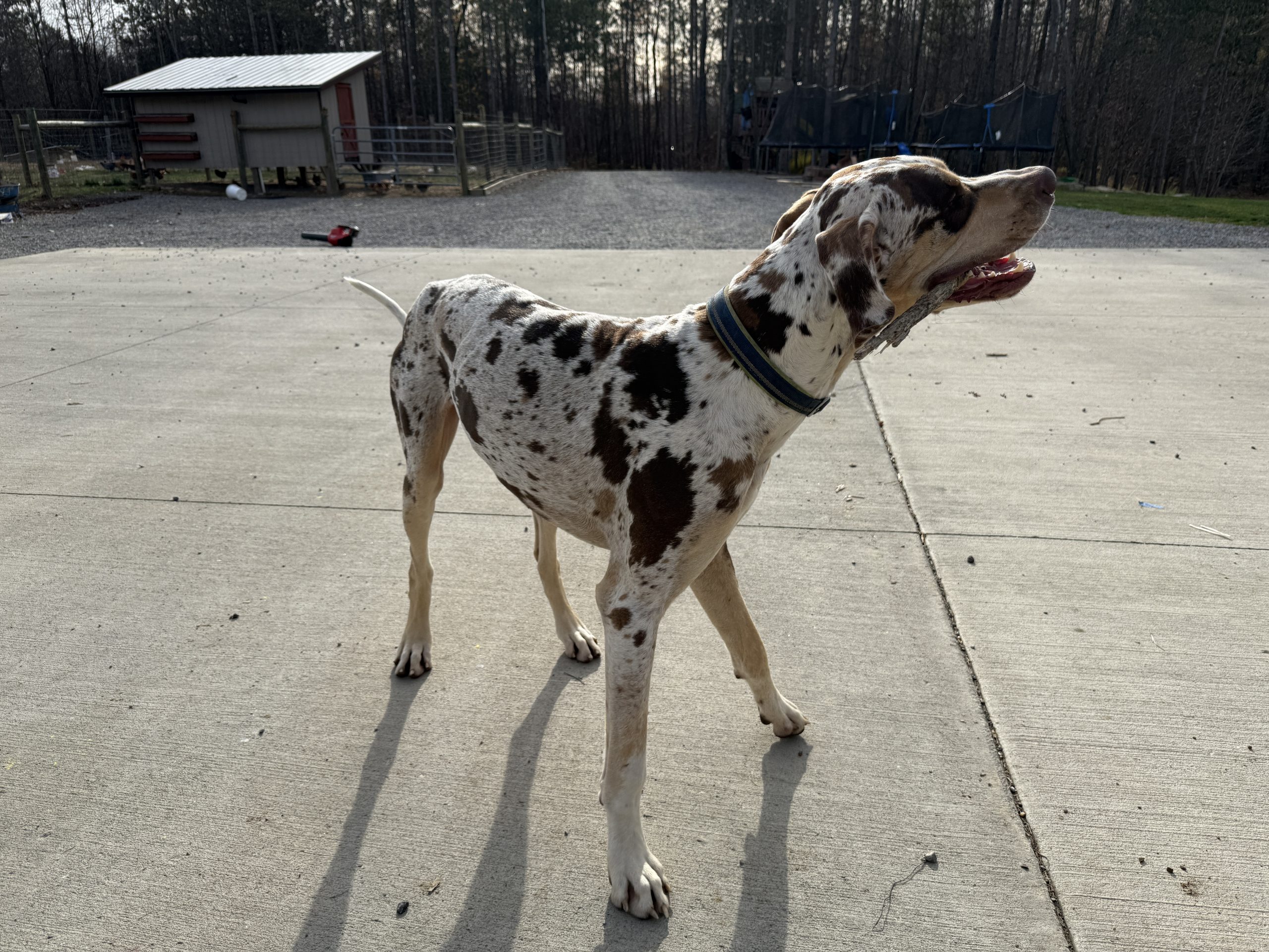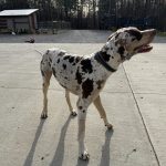 Colt is a Blue Brindlepoint and a huge stud muffin… literally, he is huge! Very well put together and just down right regal! As out biggest Dane he is thick and bulky Iike a European Dane but without the droop. He carries chocolate and harlequin so will produce a wide variety of colorful puppies! He is also our biggest baby too! He loves to cuddle and just wants to be pet and loved on! Ever heard of the “Dane lean?” He is the master of it! Things wouldn’t be the same around here without this love bug!!