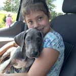 Kimber knew Hayden was out late one evening at a play and Kimber paced back and forth by the front door until Hayden arrived safely home. Another time, Hayden was sick with a fever and while laying on the couch, Kimber never left her side. Kimber exhibits perfectly how a dog can be “a man’s best friend.” Her coloration is just stunning.